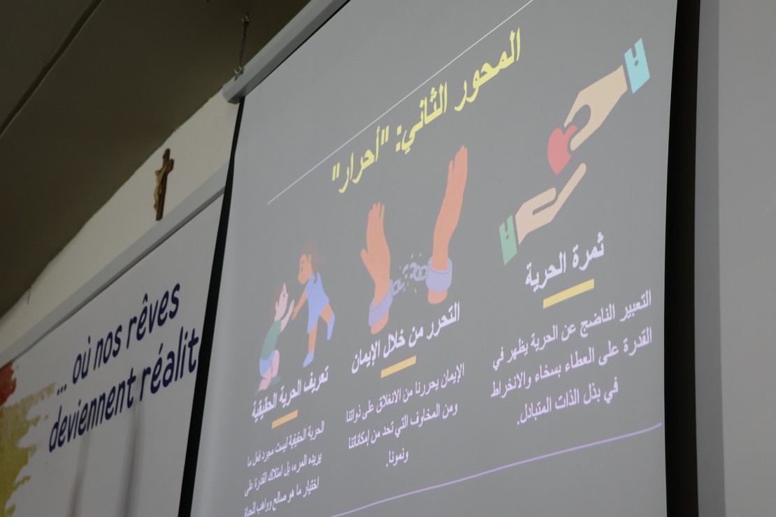 The blessed day began with a solemn Eucharistic celebration, expressing the unity of the Salesian Family and its deep roots in faith in Christ. The Holy Mass was presided over by Fr. Simon Zakarian, Regional Superior for the Middle East, and concelebrated by Fr. Dani Kirio, Fr. Mario Morro, and Fr. Vittorio. This spiritual celebration formed the foundation upon which the entire day was built, reminding us that every educational and pastoral mission begins first with an encounter with Christ and attentive listening to His Word.